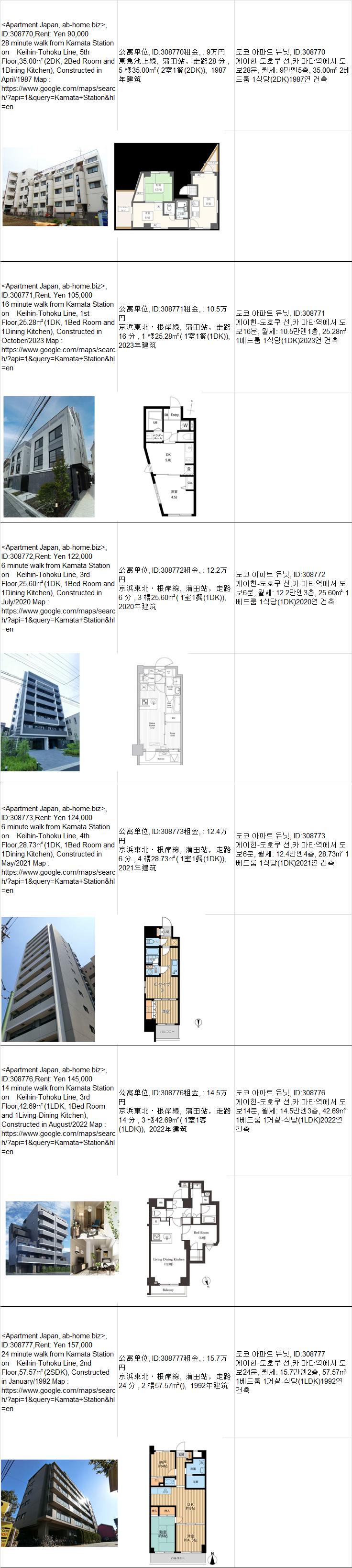 东京・千叶・埼玉・神奈川地区(租金包括共益费等) *想合租的话请联系