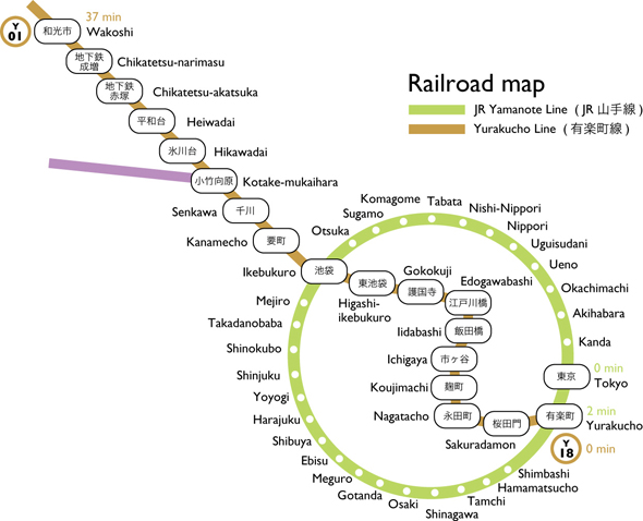 Yamanote Line Chuo Line Toyoko Line Tozai Line Kesei Line Asakusa Line Isesaki Line Seibu-Shinjuku Line Odakyu Line |